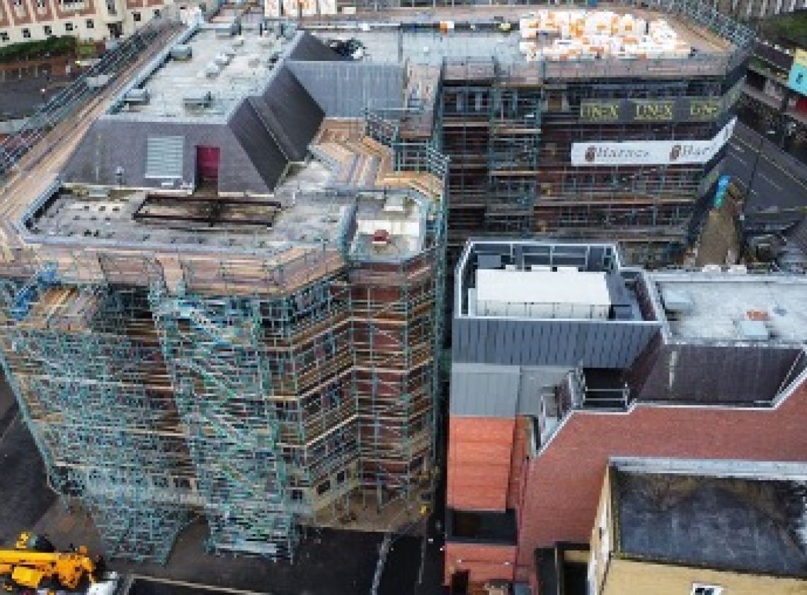 Due to stepped roof levels and extremely limited tie opportunities at high level, a full scaffold design package was required to ensure safe access and programme continuity throughout the project.